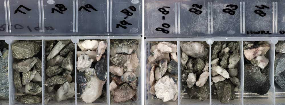 Figure 2. Drill chips from RC drill hole HWRC0198 (76-84m) – sulphide-rich carbothermal zone.