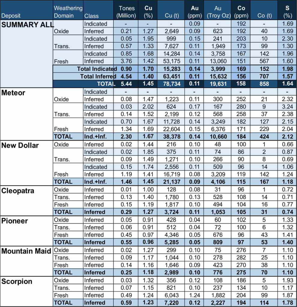 5.44 million tonnes @ 1.45% Cu, 0.11 g/t Au